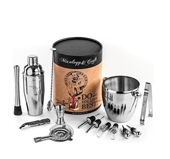 EVERYTHING YOU NEED (EXCEPT FOR THE BOOZE) 15-piece ALL-INCLUSIVE cocktail set and ice bucket. Will give you the power to easily whip up impressive cocktails for your guests. Whether you're an amateur bartender or a drink-mixing guru, or whether you re setting up a bar at home or at work, Our bar mixer set is just what you need a brilliant bartending kit to hit the ground running., WILL SERVE YOUR GUESTS WITH STYLE This premium bar kit acts like magic. Create exceptional cocktails with embarrassing ease using the leak-proof, 24oz martini shaker set and the variety of other bar supplies and accessories.